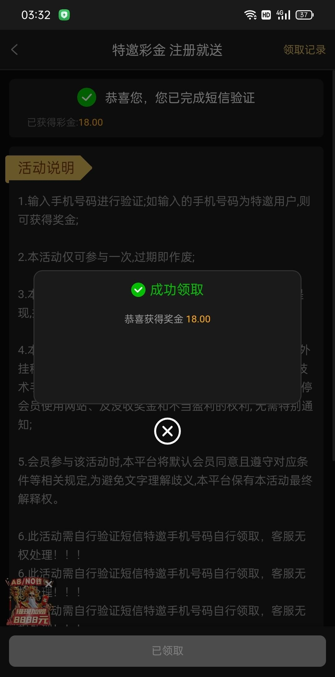 短信特邀 注册就有18 我没打出来