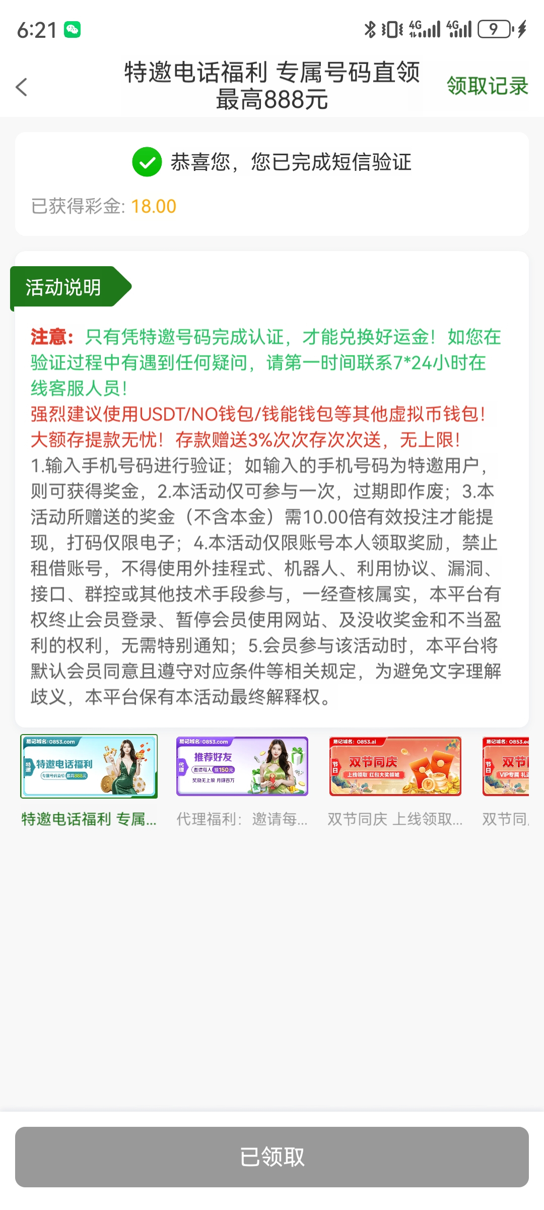 注册活动里面领取