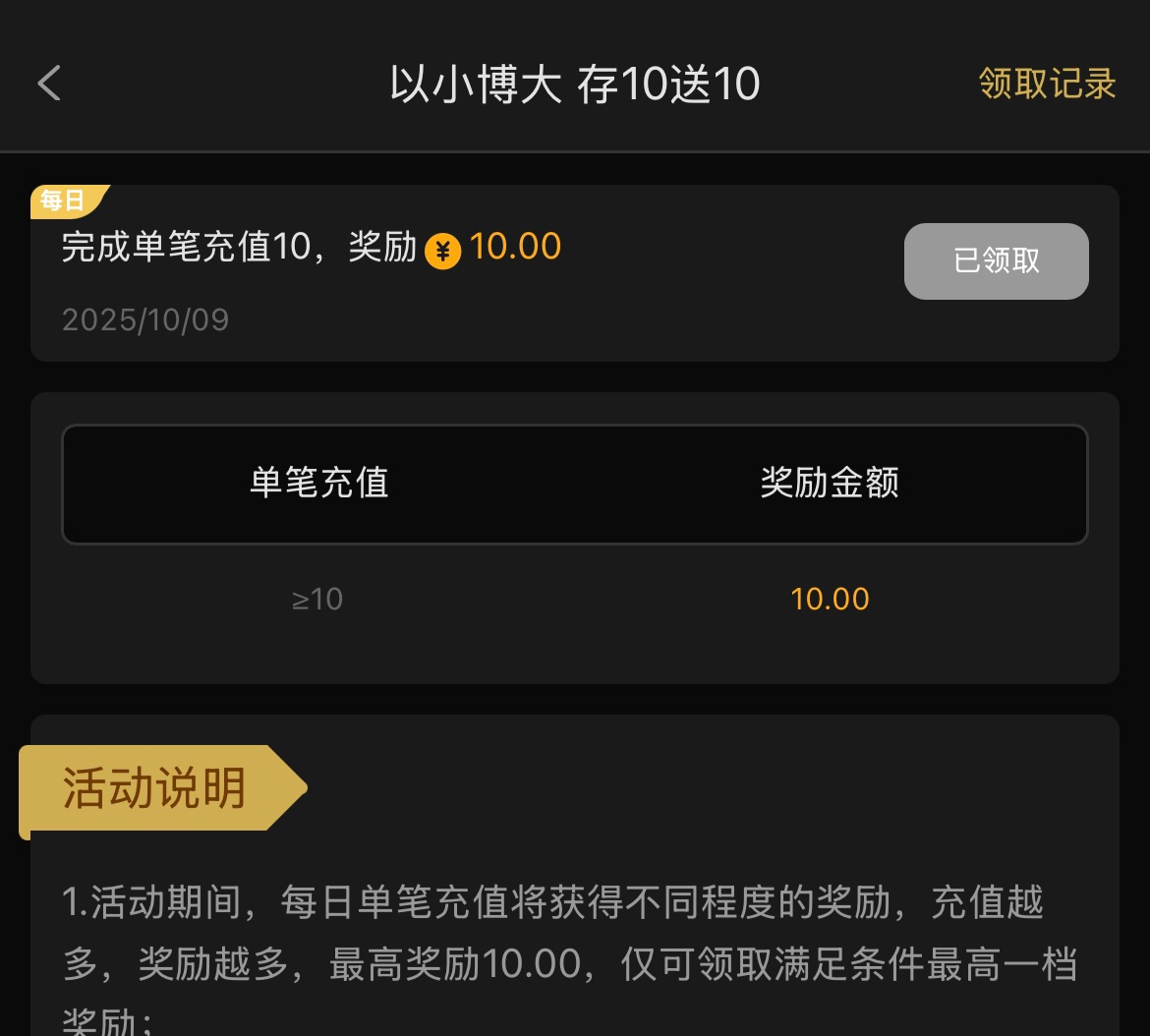 首充10+10还有一个下载app任务哪里有彩金