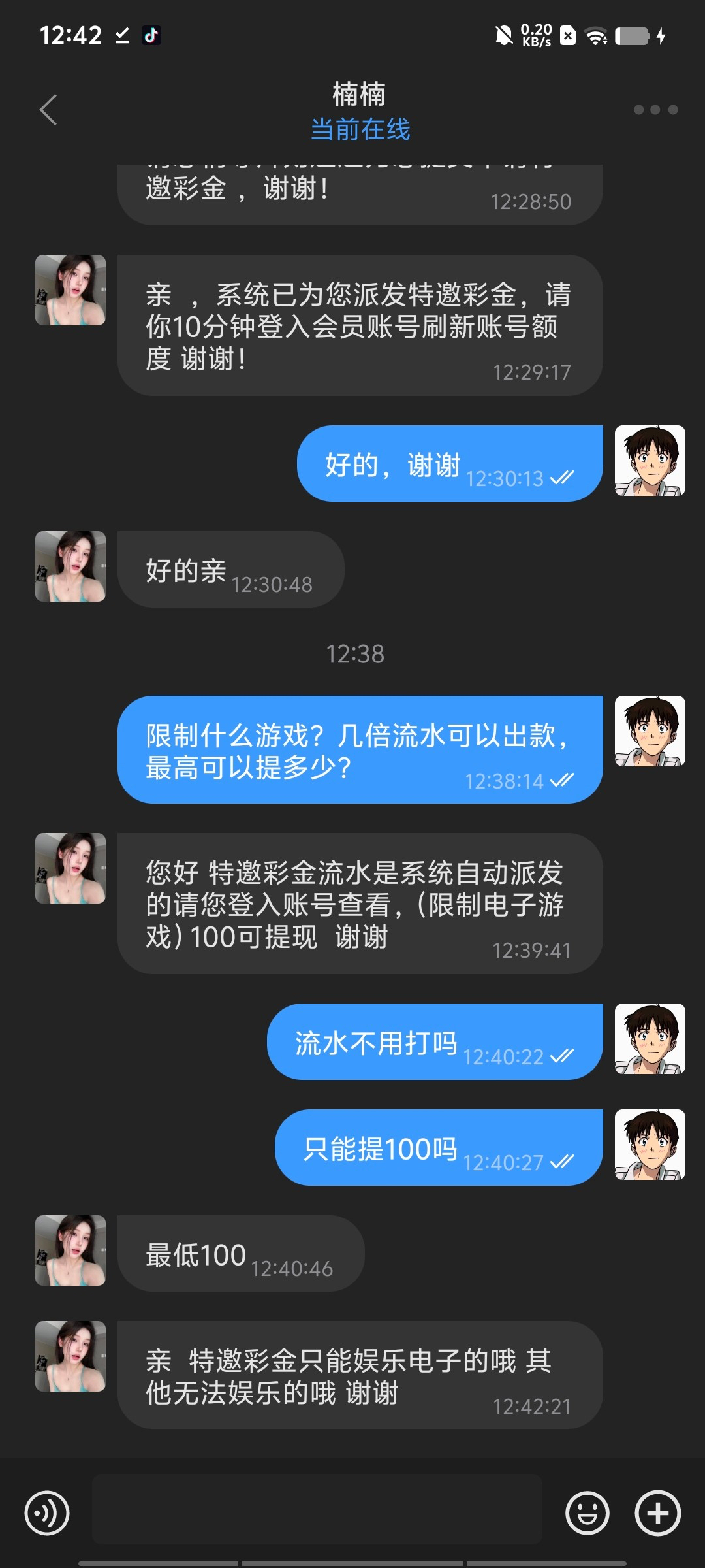 打电话给我了 特邀进100吃了500