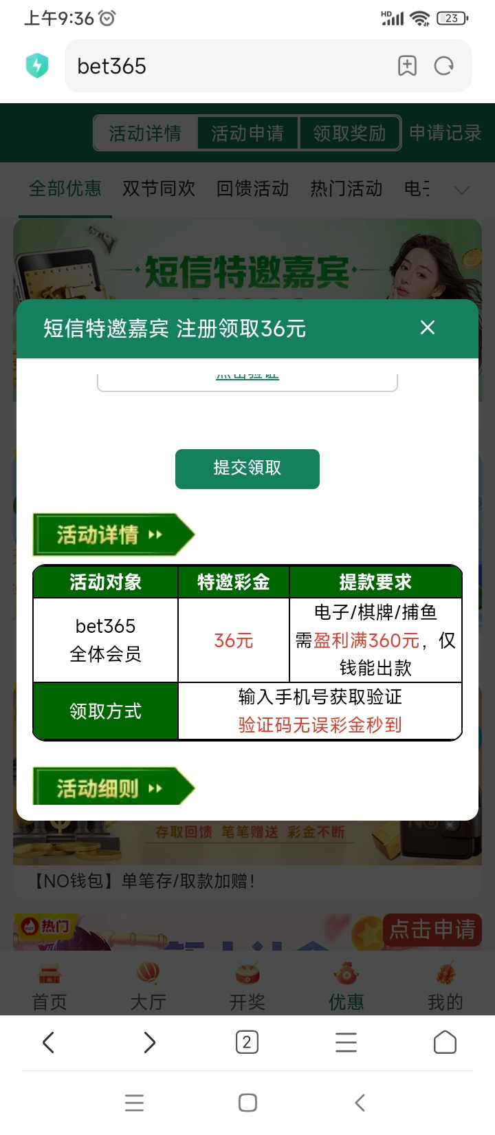 说是特邀彩金,但是我的小号没有收到短信。我申请了也给了36。没有打上去。有兴趣的可以试试。我不确定是不是都有。