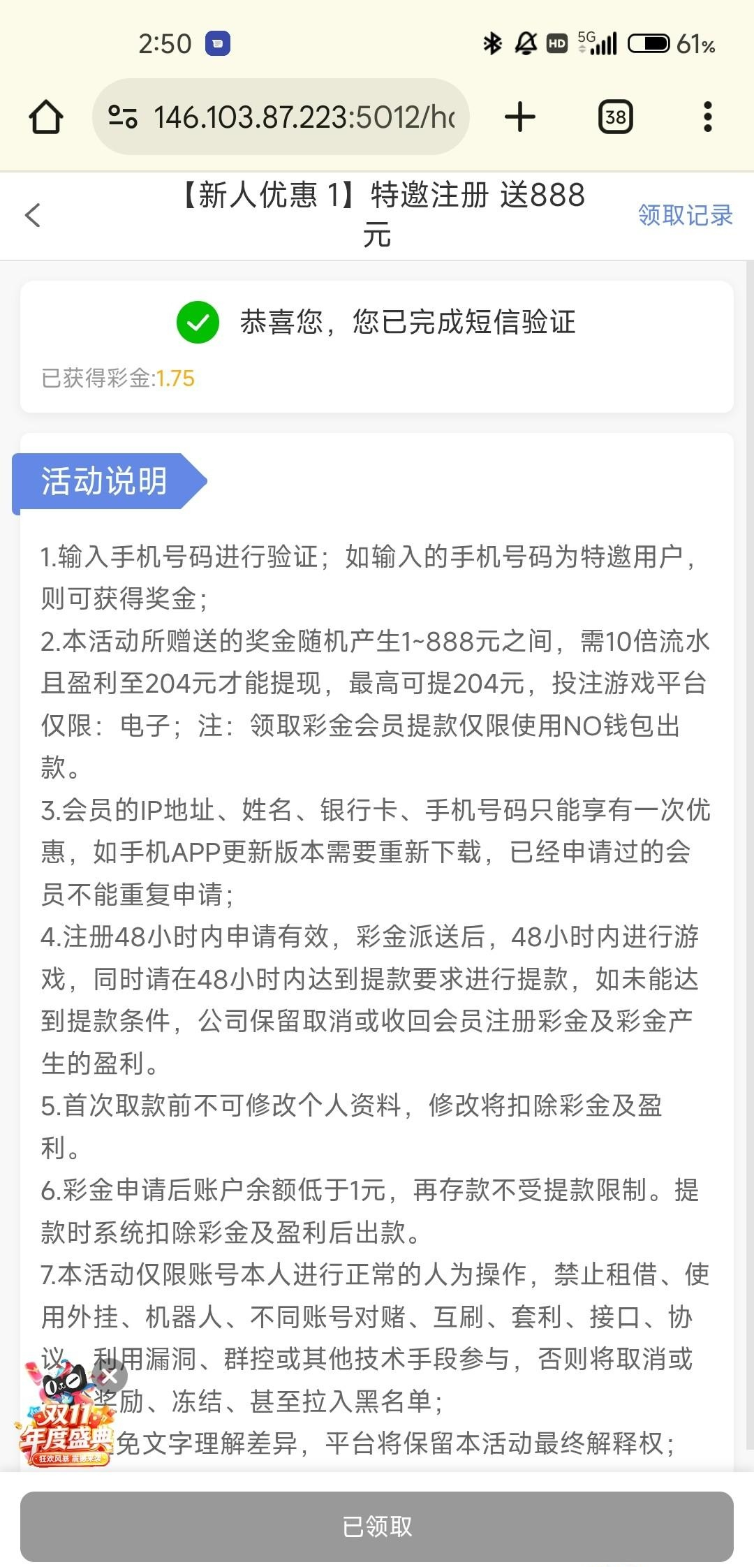 白嫖彩金