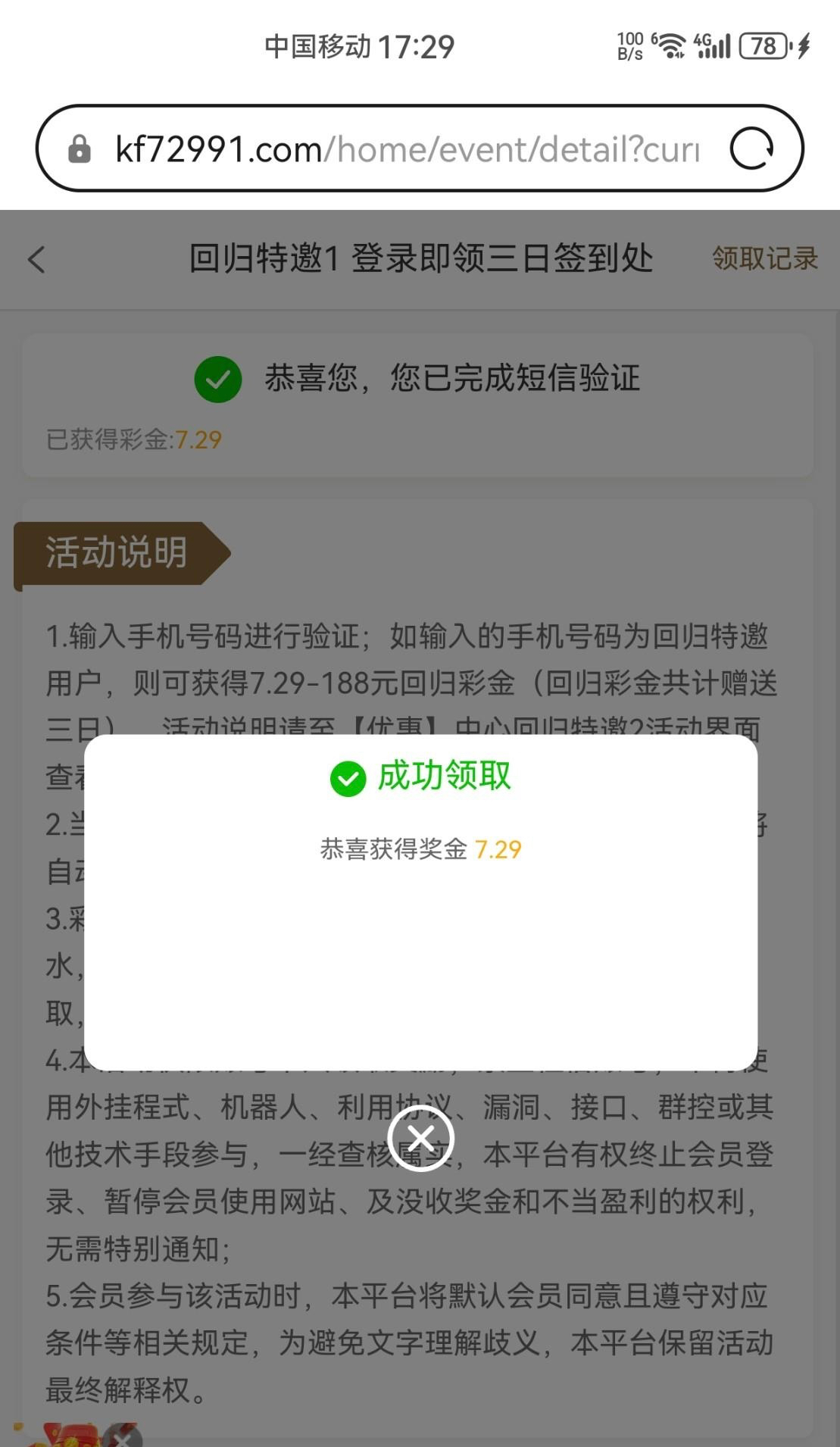 729916.com登陆回归领3天彩金,有号的登陆去优惠中心查看。我没存过。