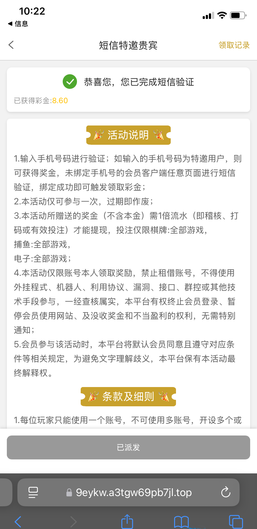 【永利2007-短信特邀彩金】
