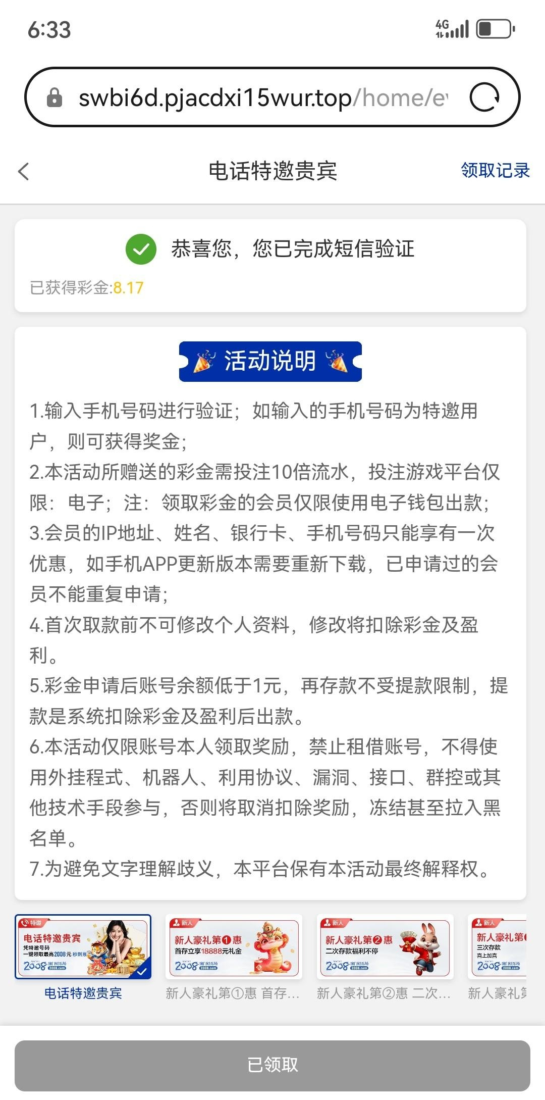 白嫖彩金
