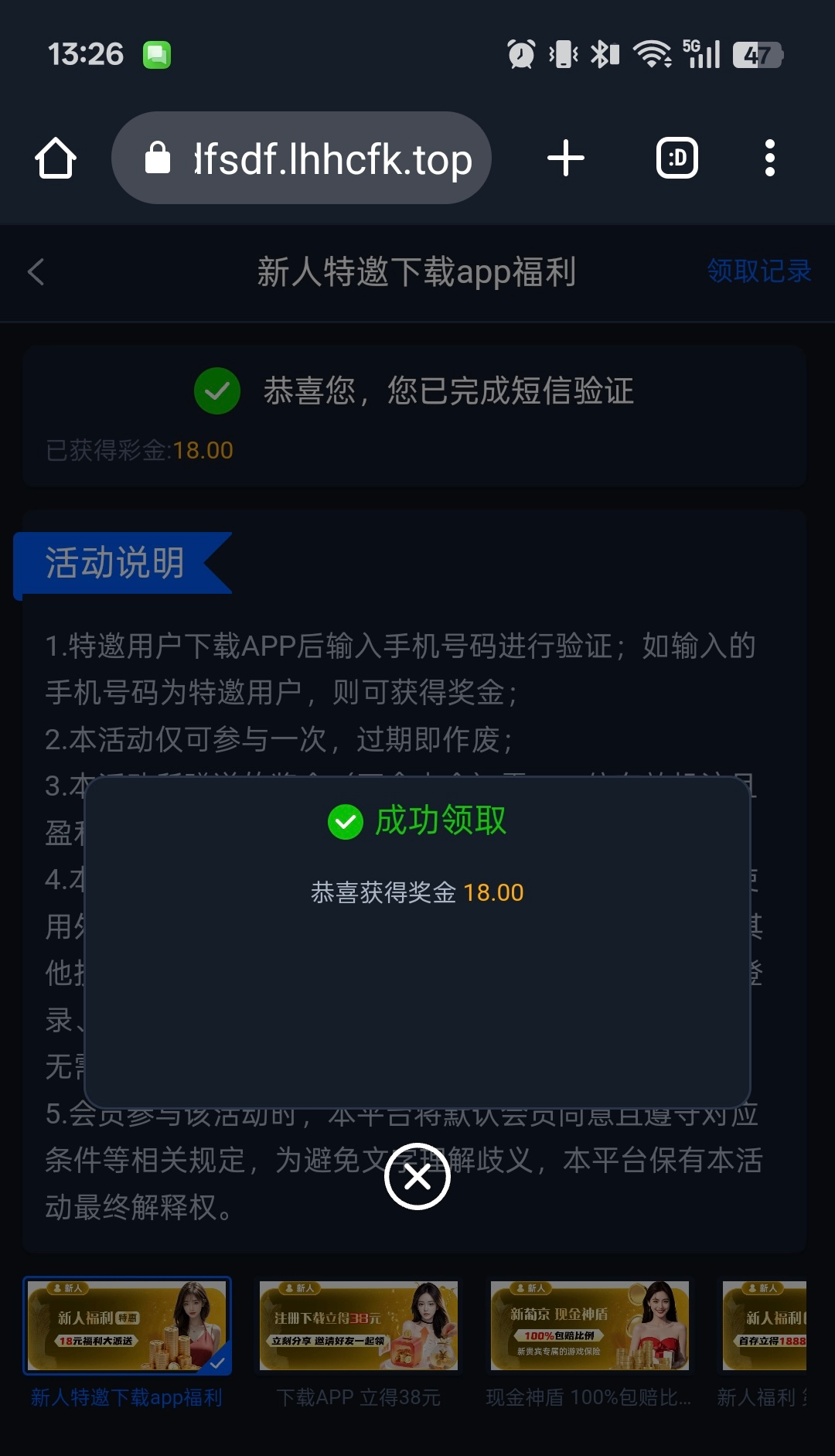碰瓷短信彩金
