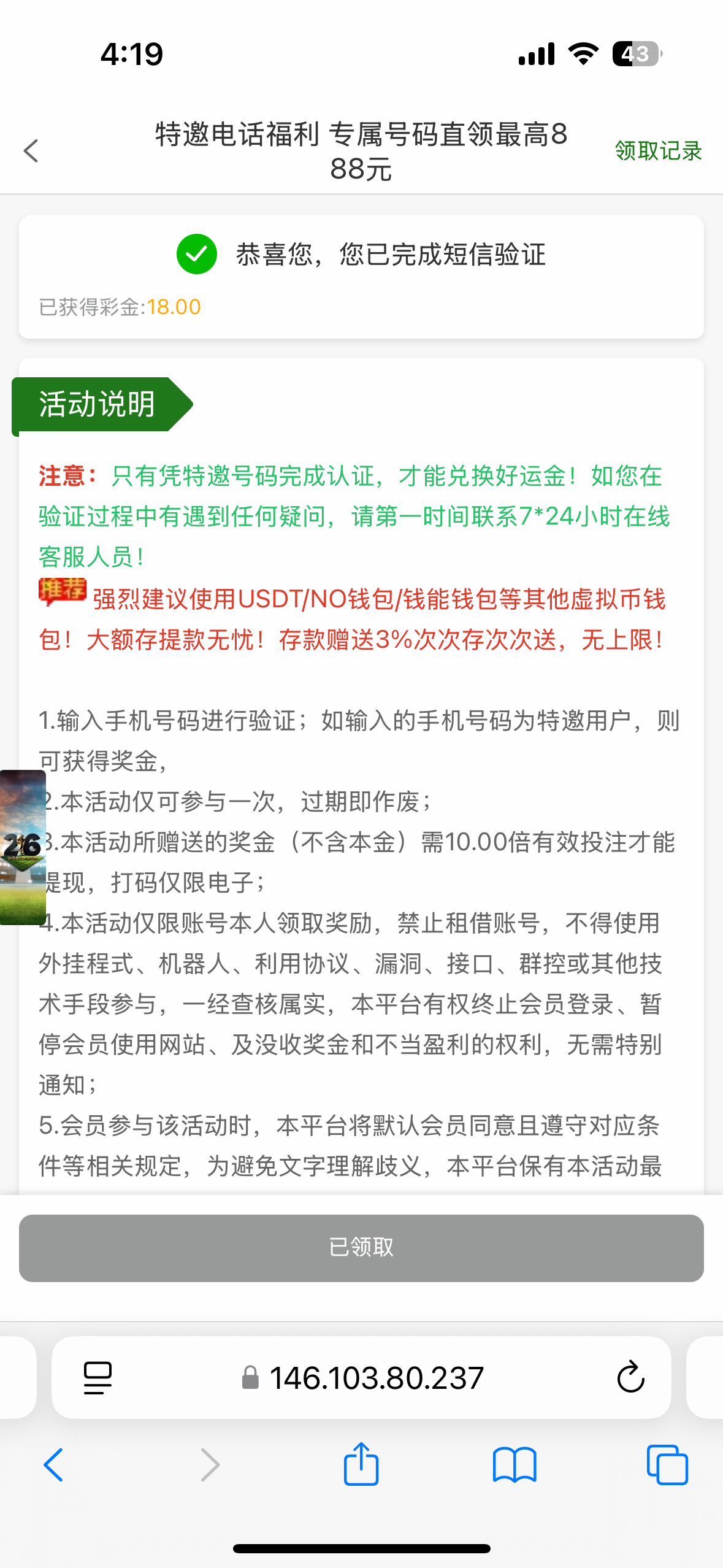 白嫖彩金