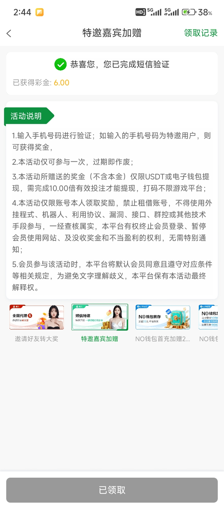 白嫖彩金