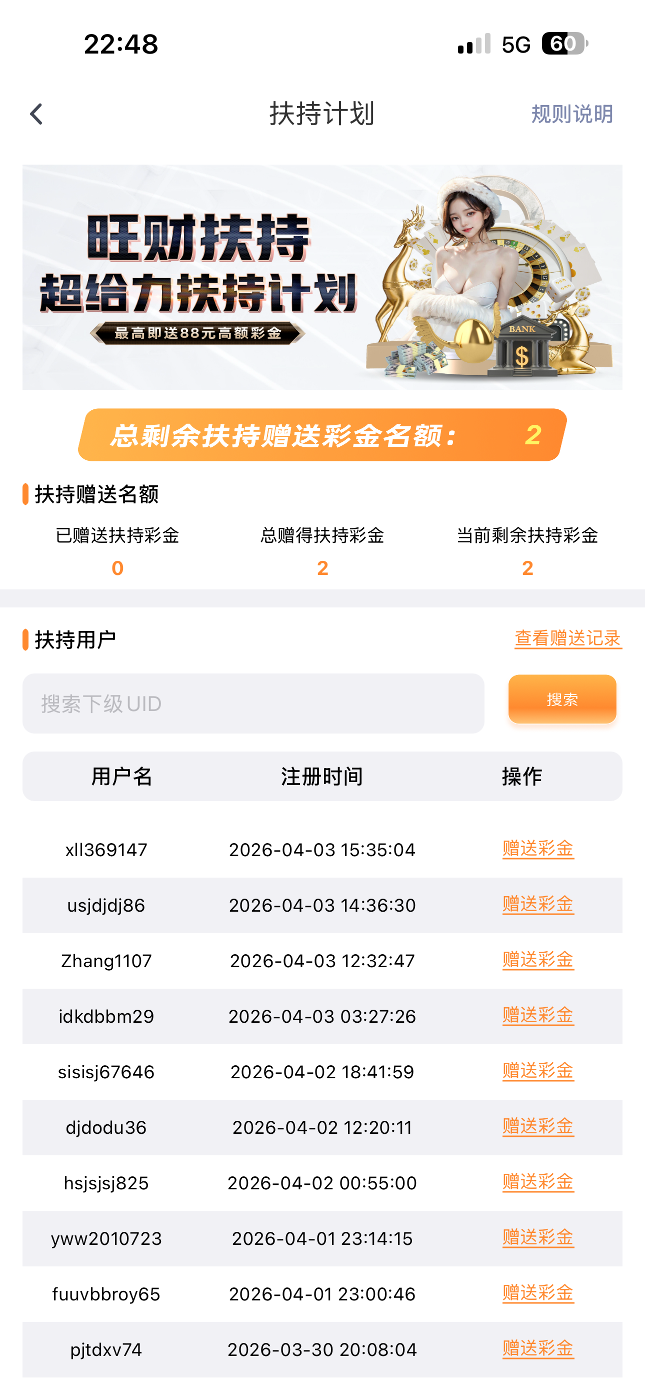 要求:并且充值50--100块钱任意随便一个金额,充了评论区发账号和uid到帖子,直接+88彩金下去